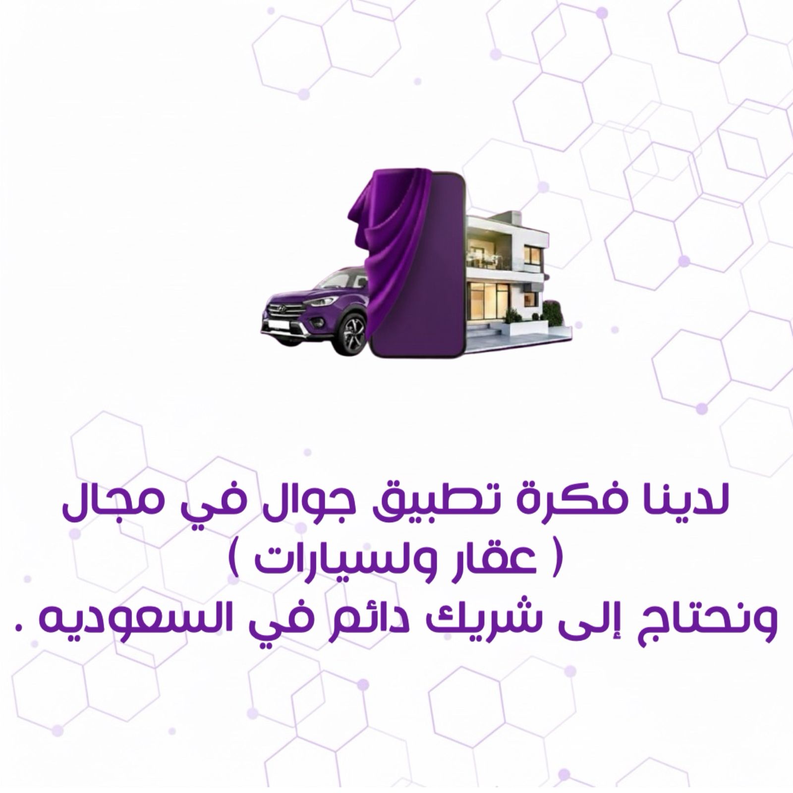 نحن فريق مكون من ثلاث اشخاص ولدينا فكرة تطبيق جوال تم انتهاء مرحلة التصميم وجاهز الي مرحلة البرمجه فكرة التطبيق مجال العقار وسيارات ولاكن بشكل مطور ونحتاج الي شريك المبلغ المطلوب 50 الف ونسبة الشريك 60% باقي التفاصيل عند التواصل وتساب 0560831402