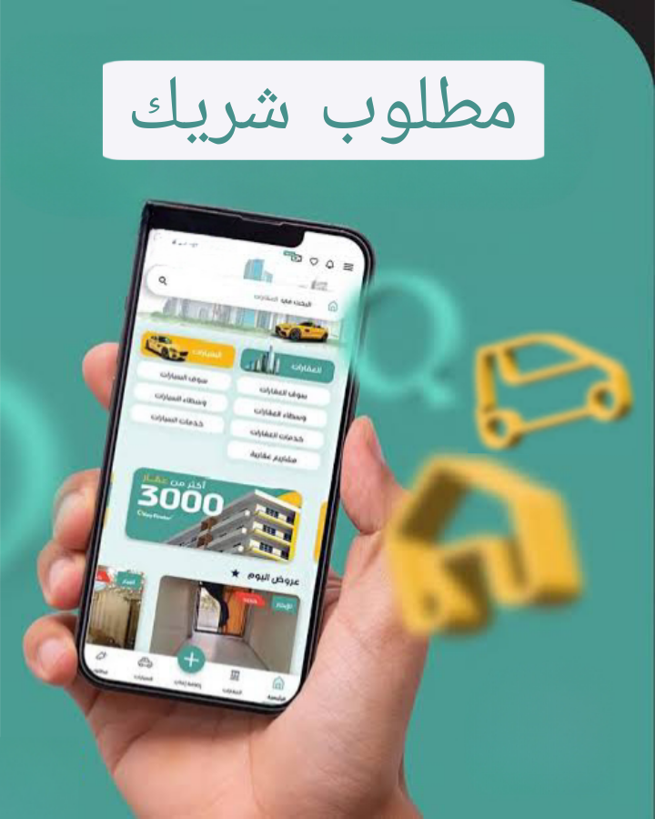 نحن فريق ولدينا فكرة تطبيق جوال تم انتهاء مرحلة التصميم وجاهز الي مرحلة البرمجه فكرة التطبيق مجال العقار وسيارات ولاكن بشكل مطور ونحتاج الي شريك المبلغ المطلوب 55 الف ونسبة الشريك 60% باقي التفاصيل عند التواصل وتساب 0507098086 اتصال 0504690966